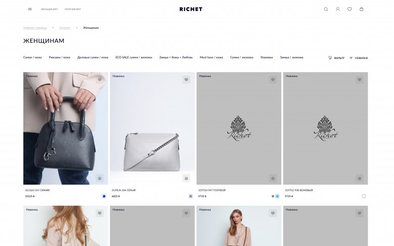 RICHET — российский бренд качественных кожаных сумок, аксессуаров и кожгалантереи. Компания стремилась усилить свое присутствие в онлайн-пространстве, увеличить продажи и подчеркнуть премиальный статус продукции. Для этого требовался не просто интернет-магазин, а цифровое воплощение философии бренда — элегантность, качество материалов и внимание к деталям.